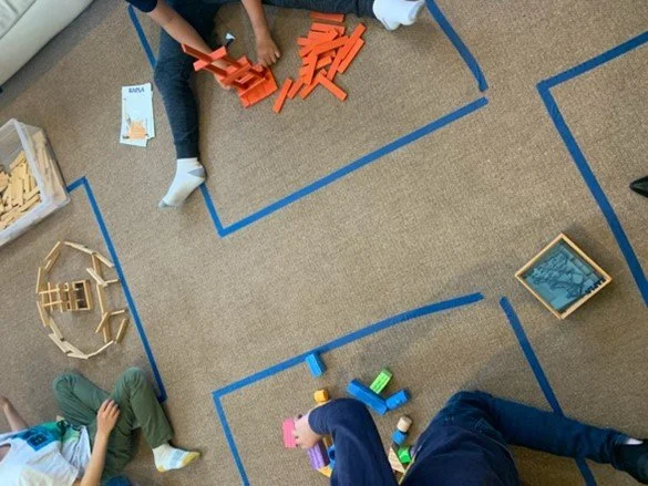 Painter’s tape can help! Make tape building spaces for each student so they each have their own space.